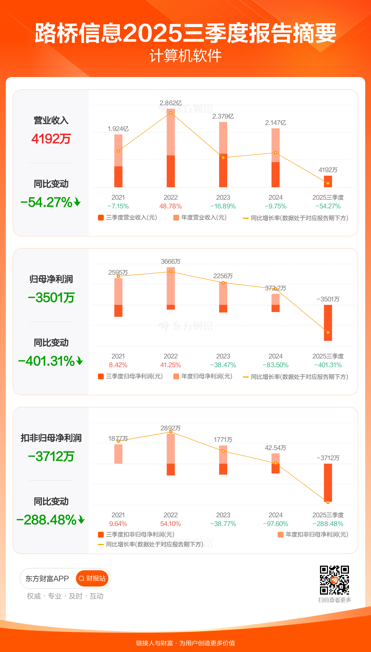 图解财报:路桥信息前三季归母净利润-3501.06万元,上年同期-698.38万元