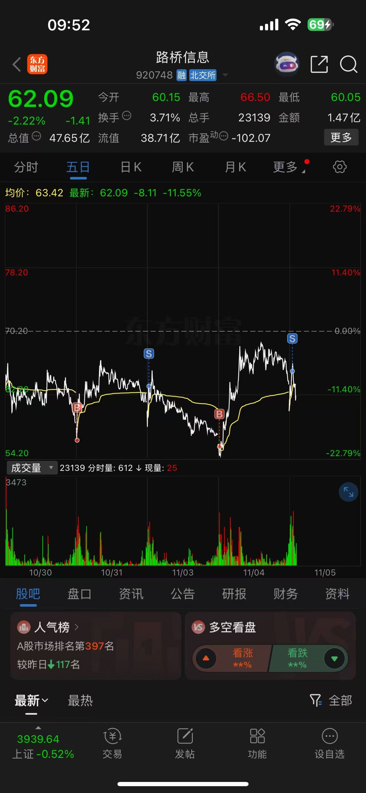 $路桥信息(SZ920748)$ 平谭强分岐!套利拨腿!