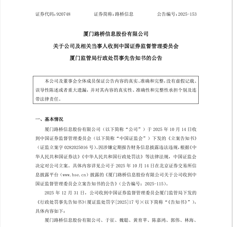 路桥信息可索赔登记,公司因信披违规收到证监会预处罚,根据相关司法解释,凡是2024年4月22日至2025年9月29日期间买入且在2025年9月29日收盘时还持有的受损投资者,可通过 蹬 公号“众维515”进行登记。