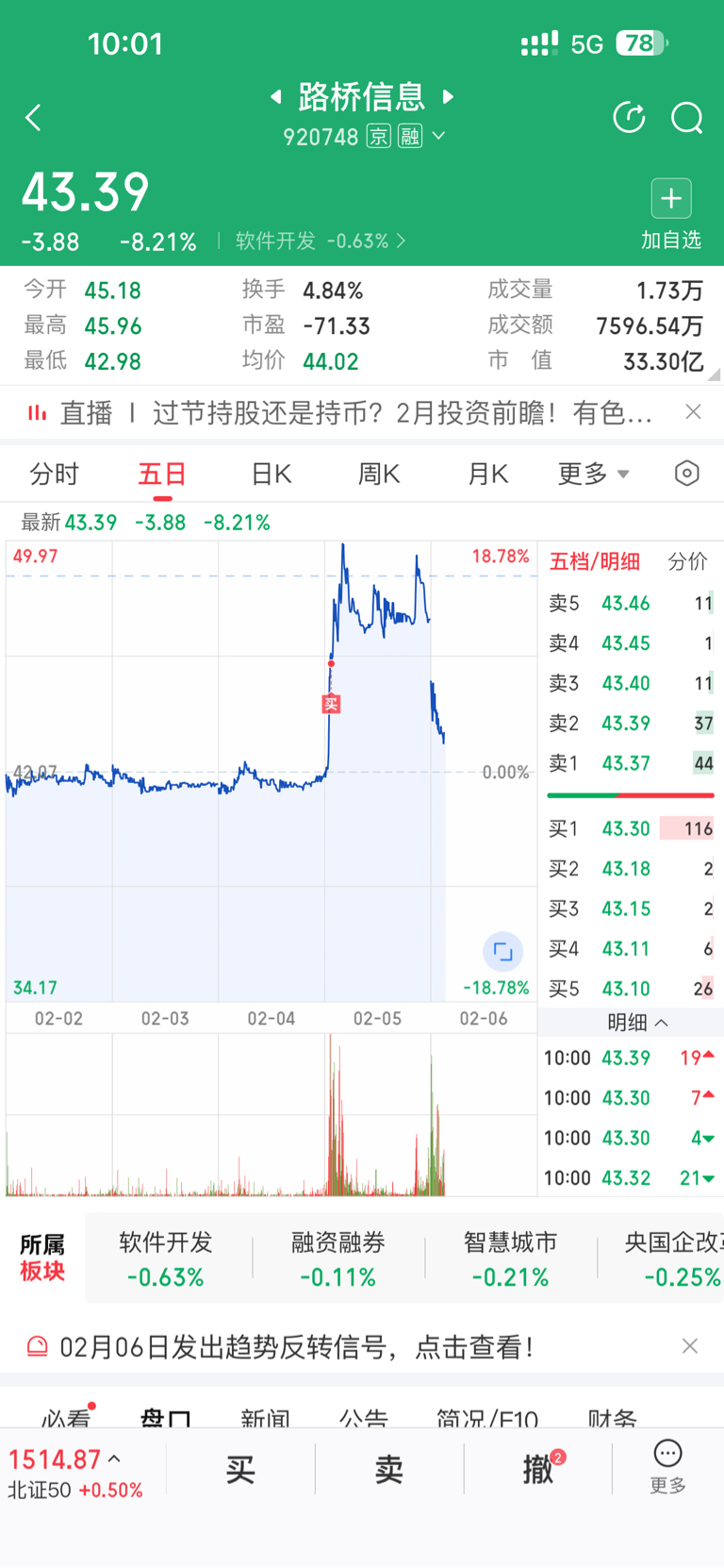 $路桥信息(SZ920748)$ 北证千万不能追,教训呀