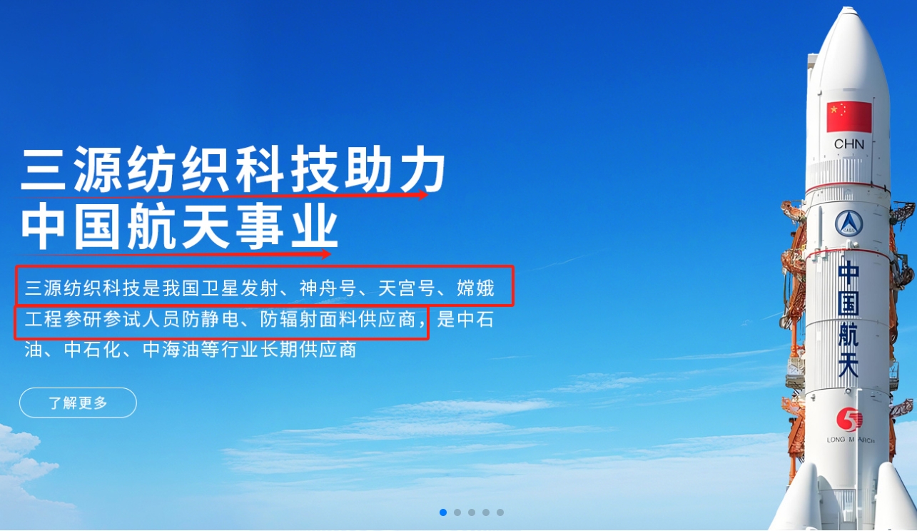 收购我国卫星发射、神舟号、天宫号、嫦娥工程防静电防辐射材料供应商三源纺织,打开我国航天市场大门