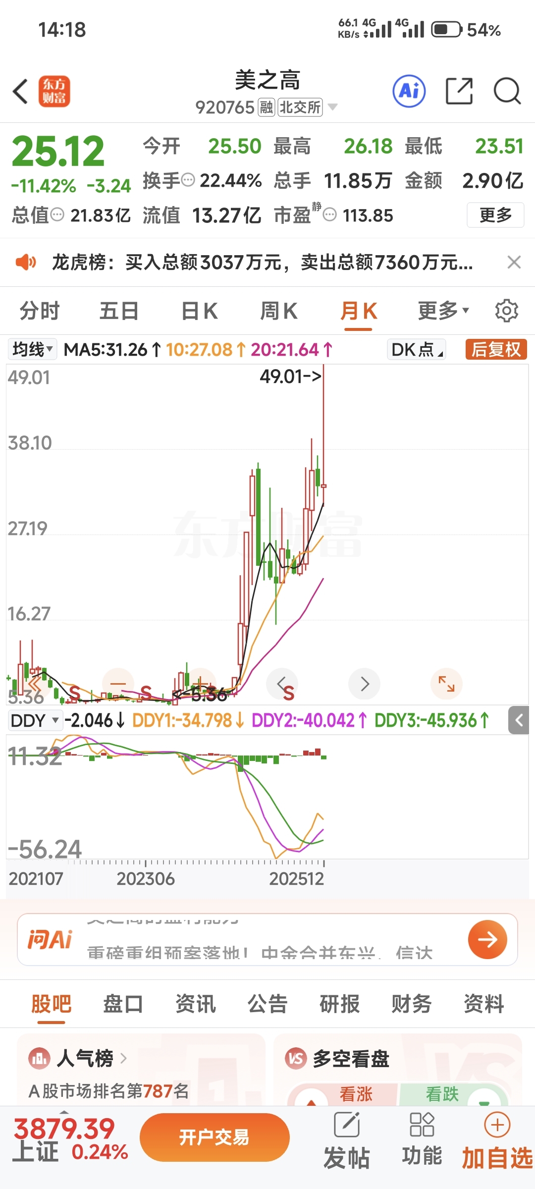 $美之高(SZ920765)$ 前面涨这么多了