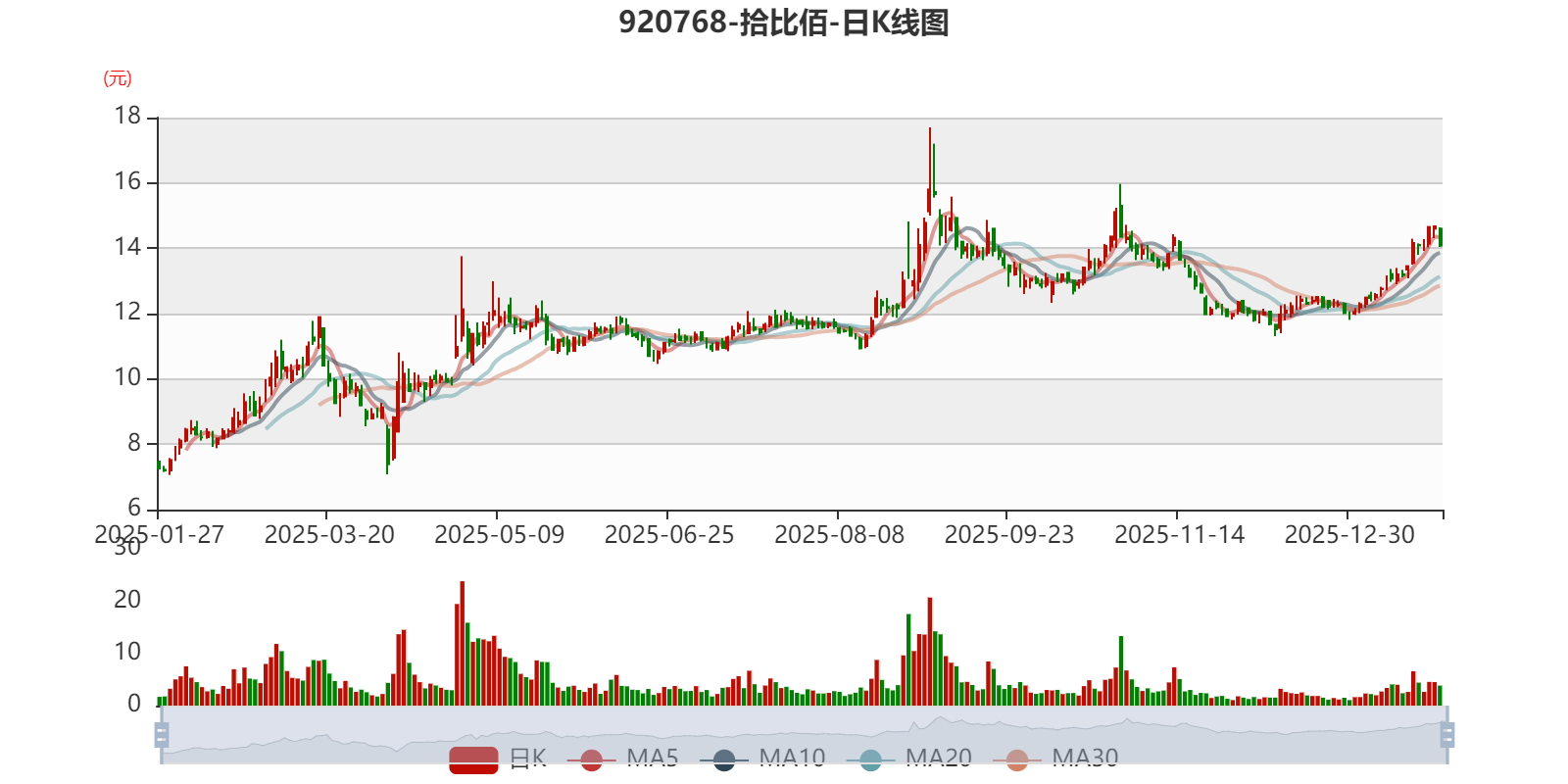 中证智能财讯拾比佰(920768)1月26日晚间披露2025年度业绩预告,预计2025年归母净利润5000万元至6000万元,上年同期亏损367.5万元。以1月26日收盘价计算,拾比佰目前市盈率(TTM)约为26.04倍-31.25倍,市净率(LF)约2.24倍,市销率(TTM)约0.88倍。