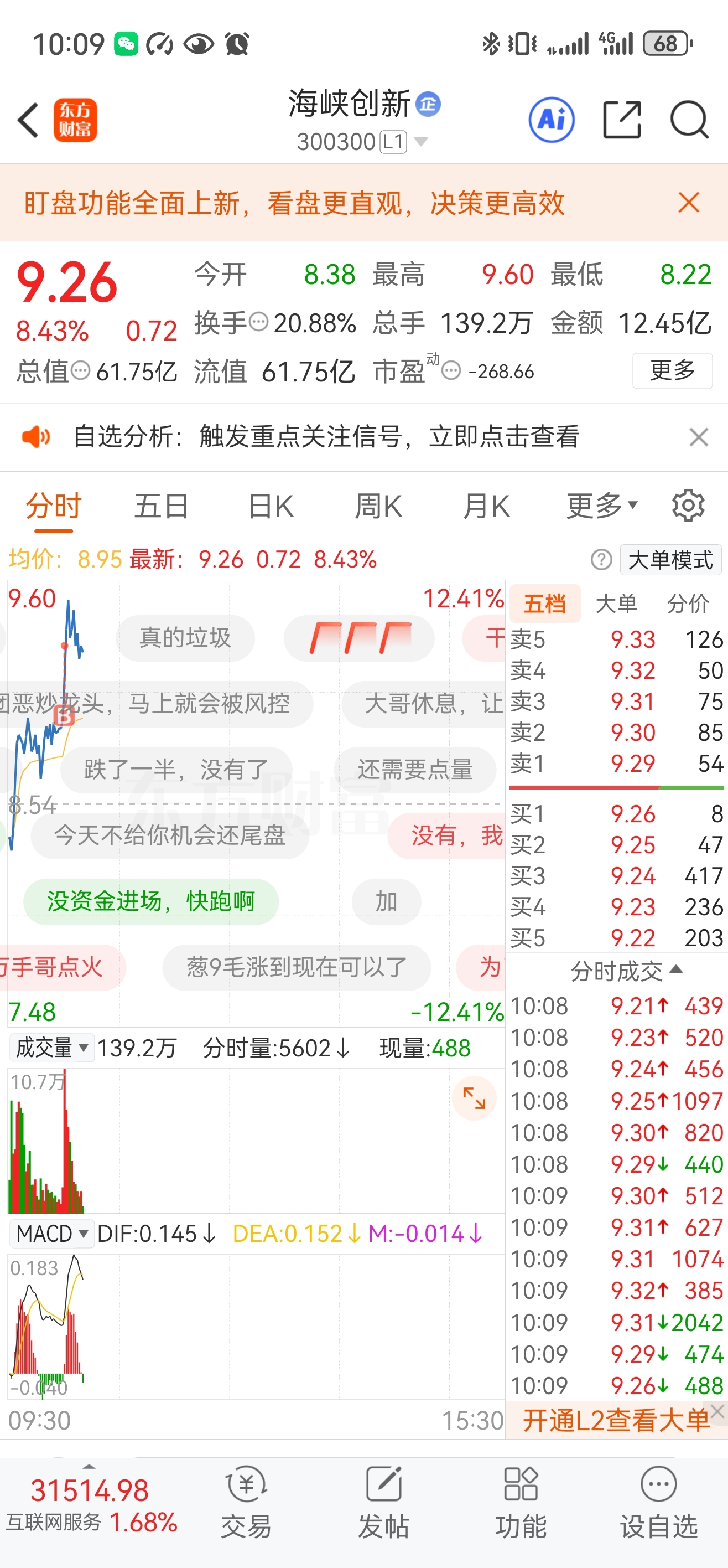 $艾能聚(SZ920770)$ 今早出了力佳,在平潭上看半天没敢下手,看封板了才去追海峡,下周回来再买小艾。