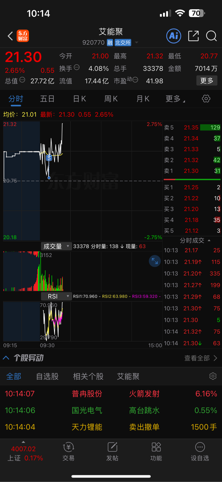 $艾能聚(SZ920770)$ 昨天20.5抄底的仓位,昨天尾盘21.05卖了一半,今天想等拉高再卖一半,就等我呢是吧,20.78卖的。狗见了都摇头↔