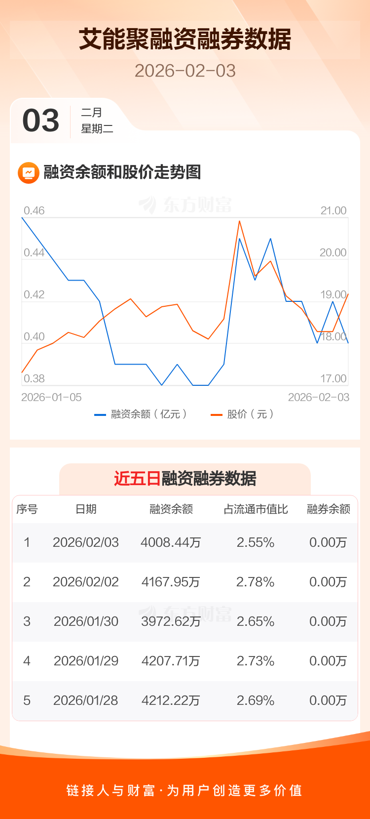 交易所最新数据显示,艾能聚于2026年2月3日获融资买入381.16万元,融资偿还540.66万元,当日融资净偿还159.51万元。目前,该股融资余额4008.44万,占流通市值比例为2.55%。