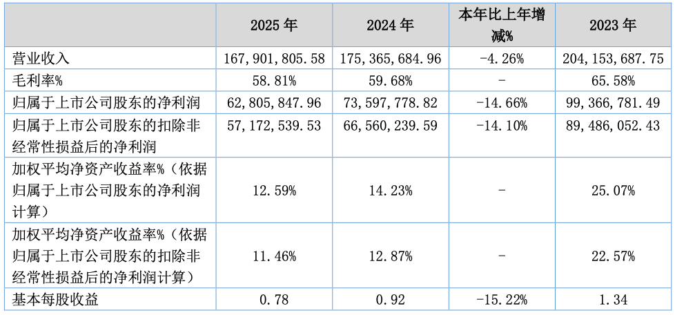 3月20日,武汉蓝电(920779)公告,公司2025年实现营业收入1.68亿元,同比下降4.26%;归属于上市公司股东的净利润6280.58万元,同比减少14.66%;归属于上市公司股东的扣除非经常性损益后的净利润5717.25万元,同比减少14.10%;基本每股收益0.78元,同比减少15.22%。公司拟每10股派发现金红利7元(含税)。