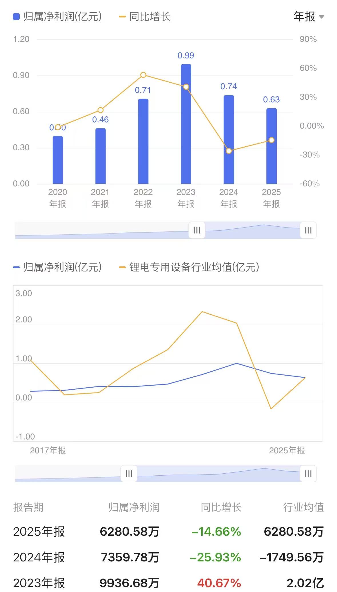 值得关注的是,武汉蓝电上市当年公司归母净利润达9936.68万元,而2024年、2025年归母净利润连续两年下滑,营业收入同样连续两年同比下降。