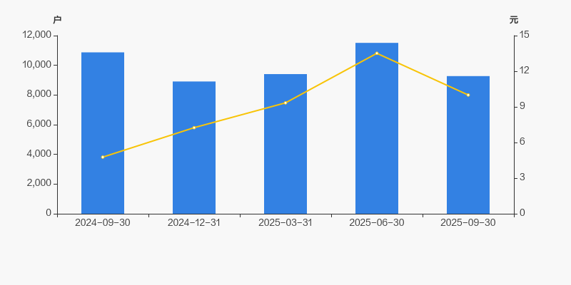 2024年9月30日至今,公司股东户数显著下降,区间跌幅为14.71%。2024年9月30日至2025年9月30日区间股价上涨109.83%。