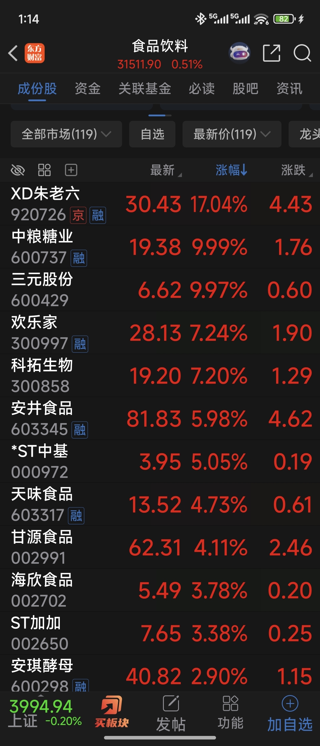 同样是消费概念,食品股,北证股,朱老六昨天涨停板,今天又是暴涨你呢???