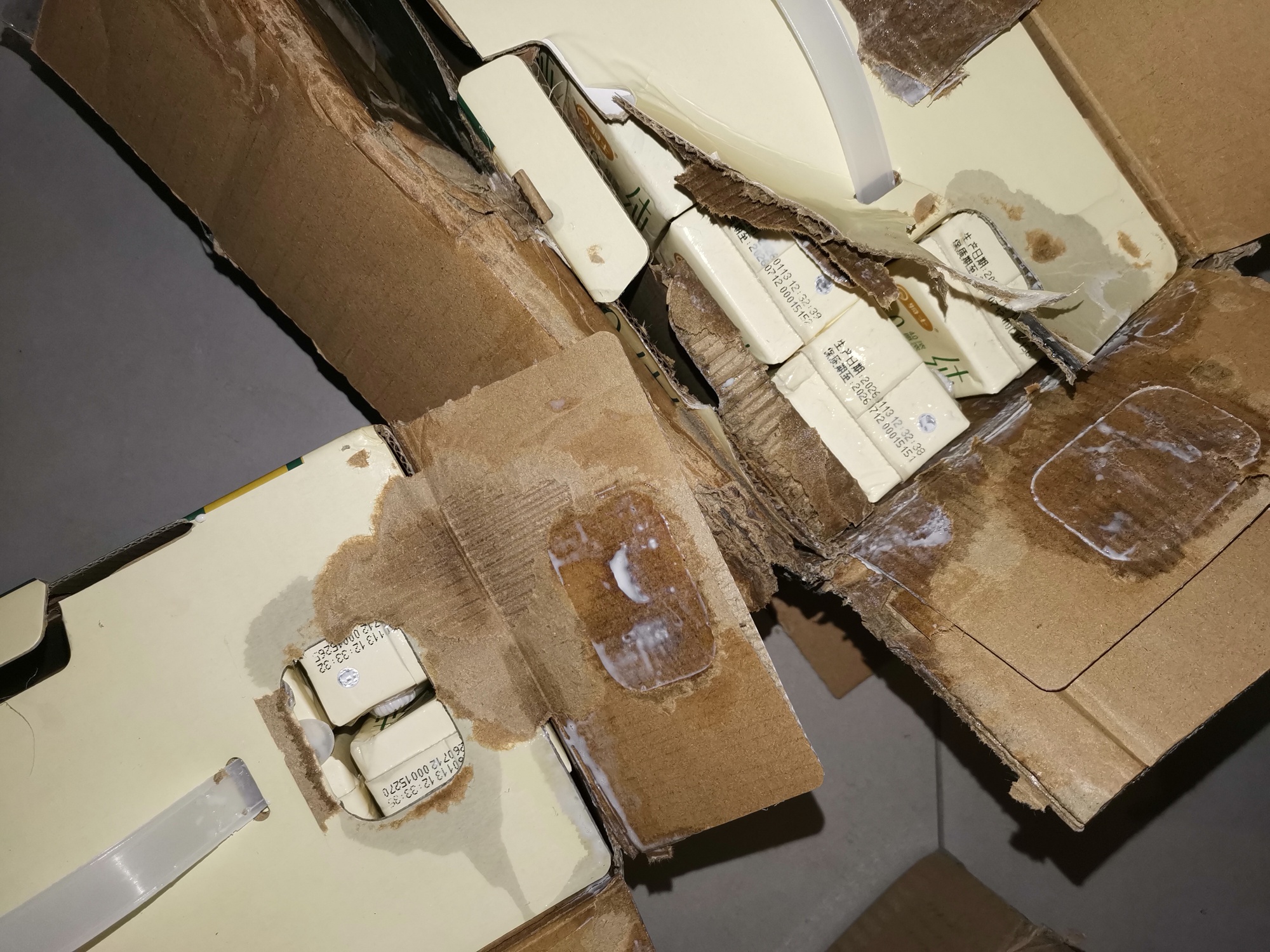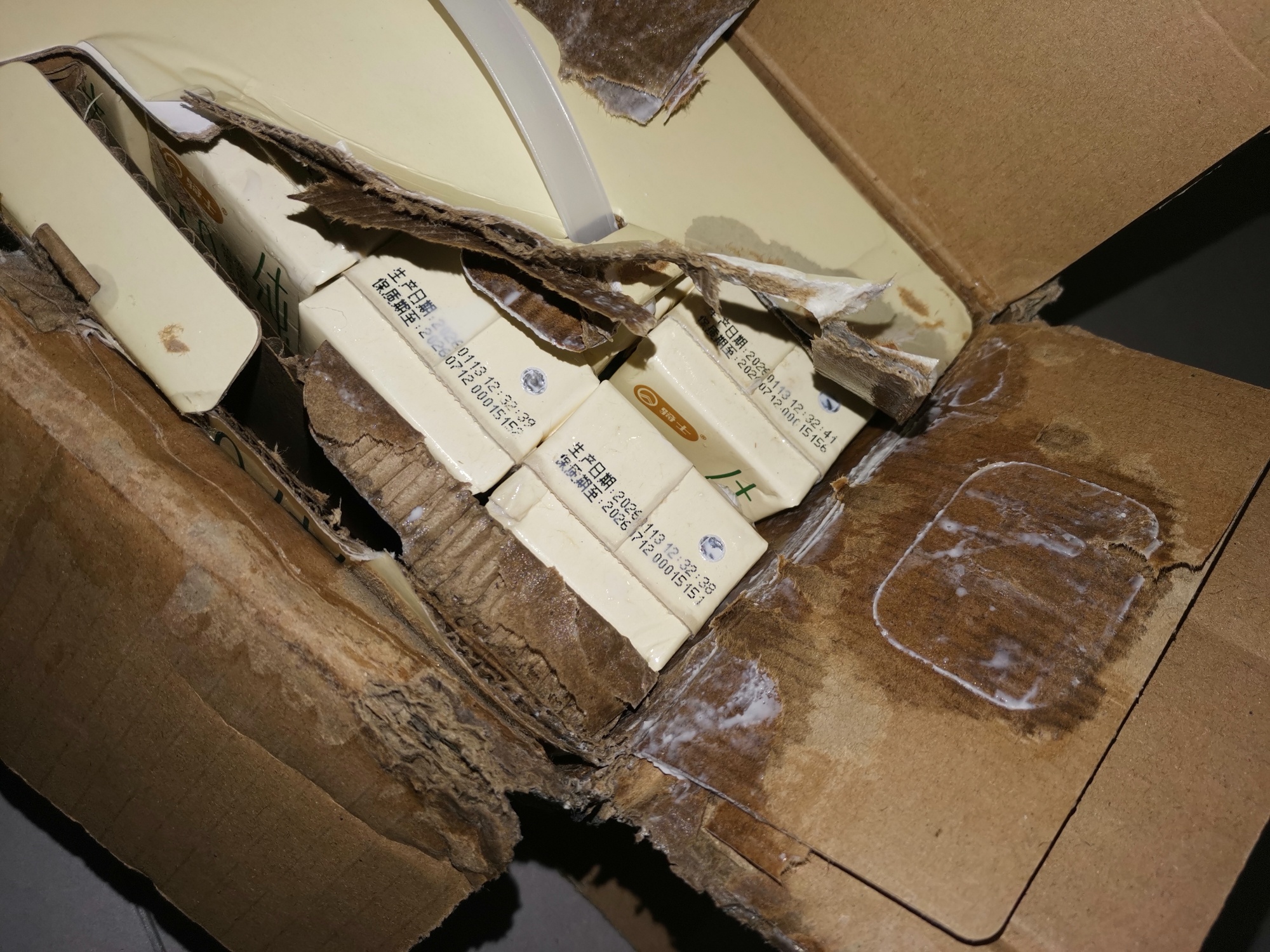 买了三箱牛奶,收到货坏了两箱,太失望了!