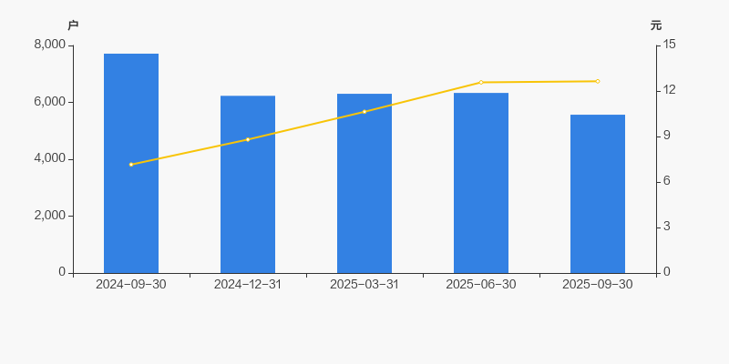 2024年9月30日至今,公司股东户数显著下降,区间跌幅为27.84%。2024年9月30日至2025年9月30日区间股价上涨76.72%。
