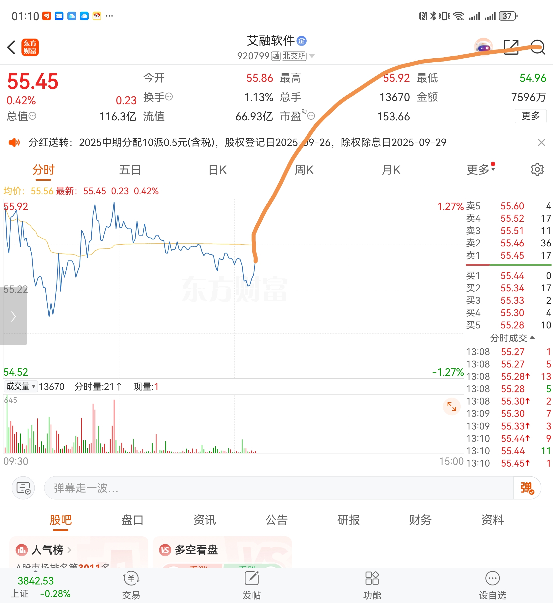 $艾融软件(SZ920799)$ 能不能来个这样的走势