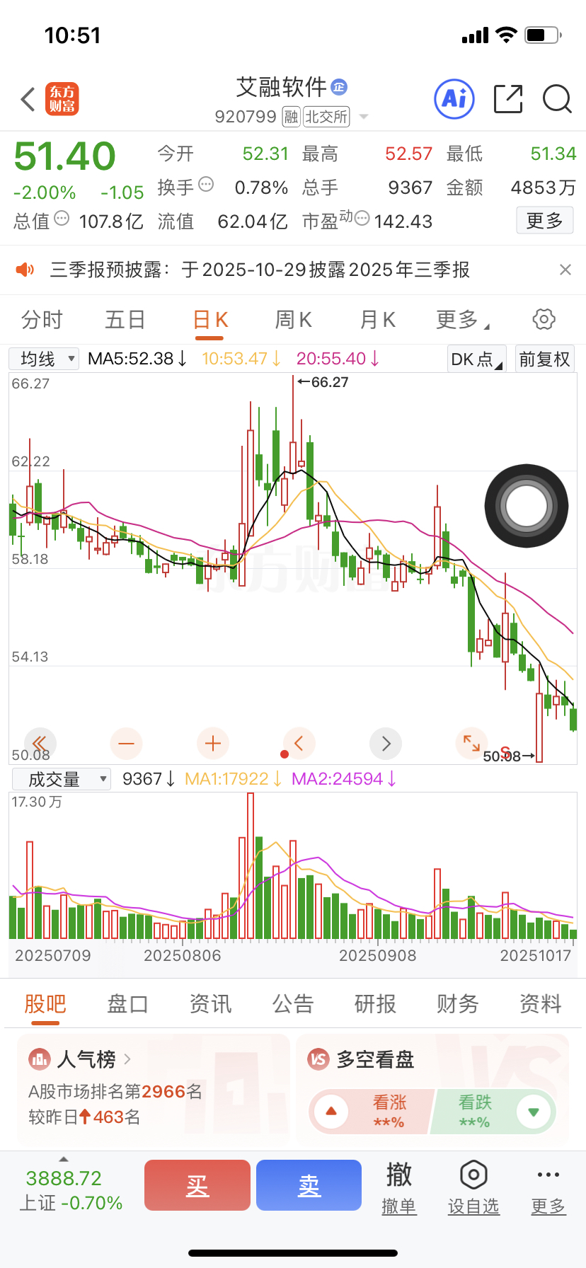 $艾融软件(SZ920799)$ 沿5日线一直下跌,什么时候企稳再考虑吧,即便企稳了还得横盘震荡