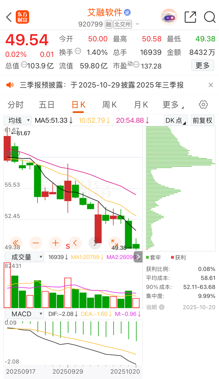 $艾融软件(SZ920799)$ 上证从4月7日到10月20日,上涨767.31。艾融股价却已接近4月7日。