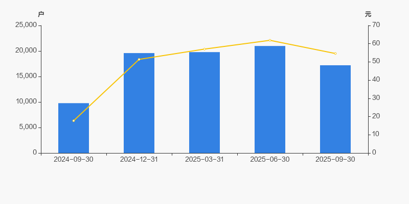 2024年9月30日至今,公司股东户数显著大幅增长,区间涨幅达76.04%。2024年9月30日至2025年9月30日区间股价下降60.97%。