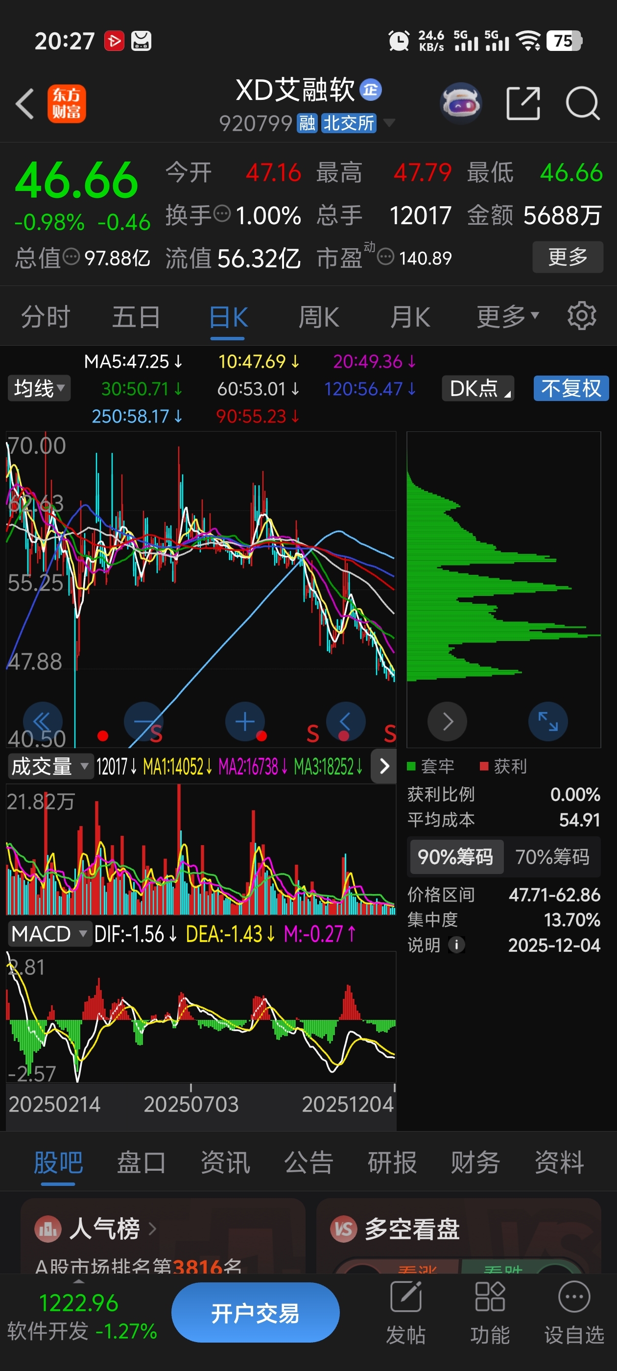 $XD艾融软(SZ920799)$ 全部是小散吗?套牢了吗?