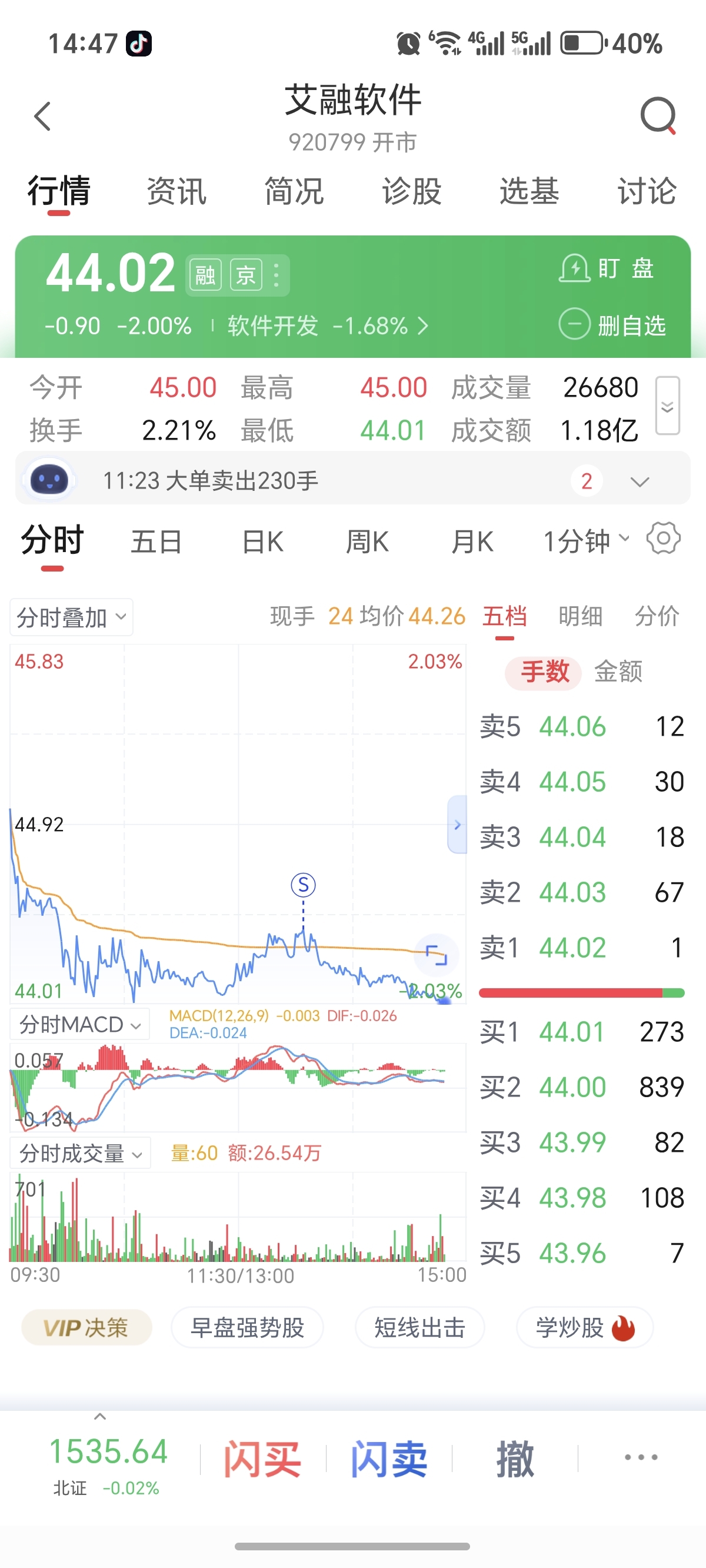 $艾融软件(SZ920799)$ 这次没赚钱,亏百分之0.6走了。下月再战