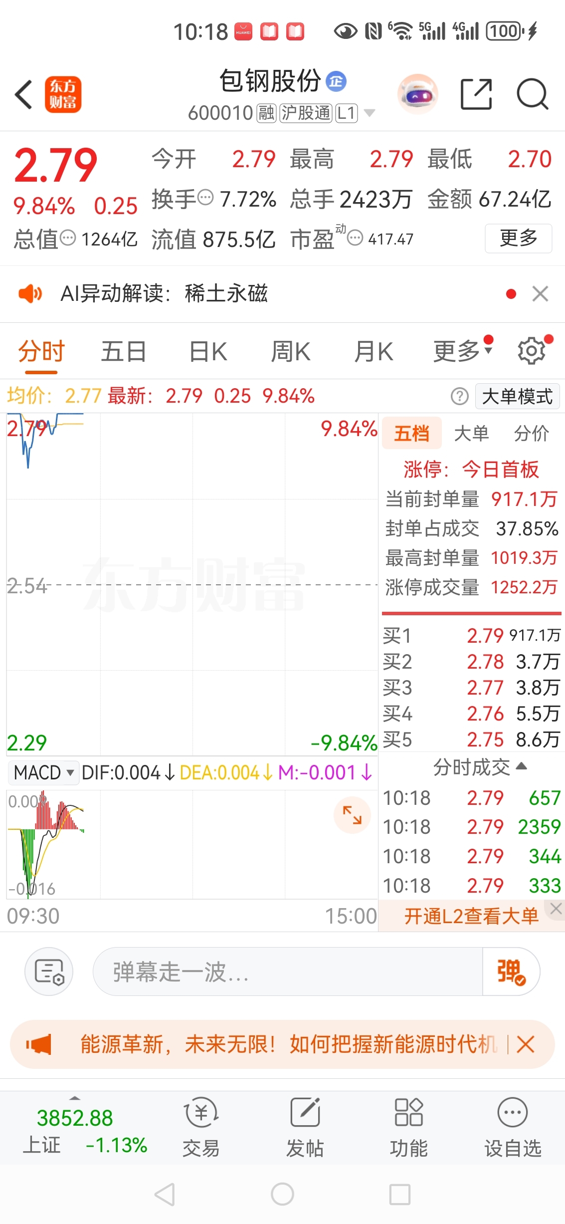 $奔朗新材(SZ920807)$ 怕个锤子,稀土永磁龙头股包钢股份资金净流入18.82亿,24.8亿封死涨停板!见下图,奔朗新材即将一飞冲天,30厘米大长腿,哈哈哈