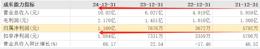 2021年至2024年营收(非精确)为6亿元、5亿元、6亿元、10亿元;