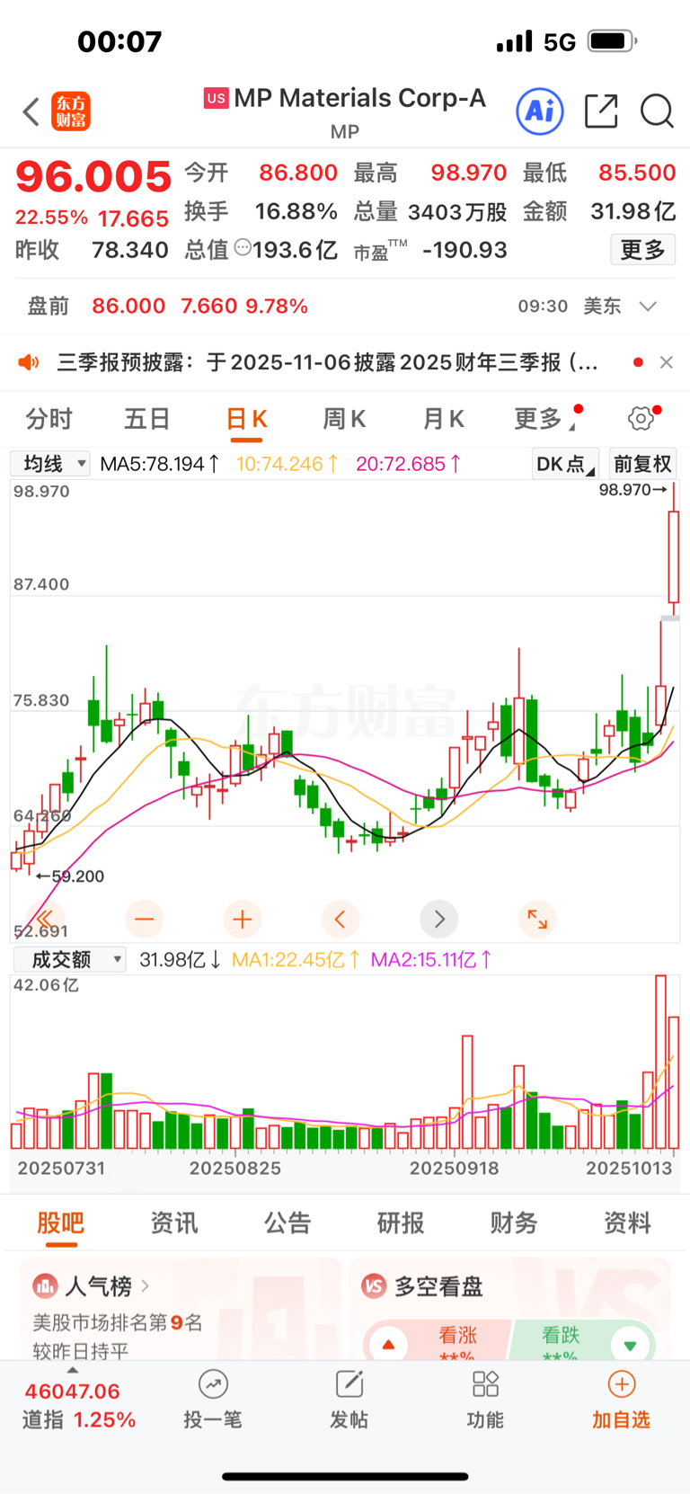 请看下图美国稀土暴涨35%新高不断!明天稀土又稳了