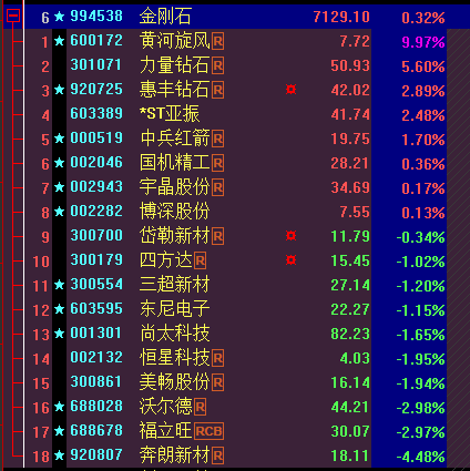 金刚石即时板块表现