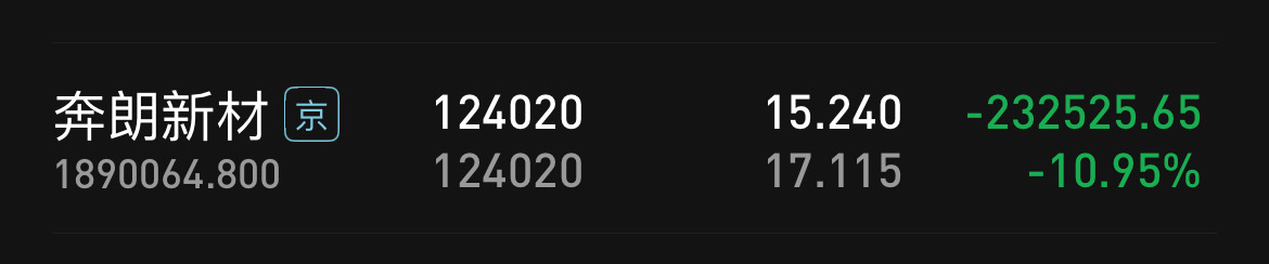 $奔朗新材(SZ920807)$ #炒股日记# 盲目自信,今日立贴警醒自己