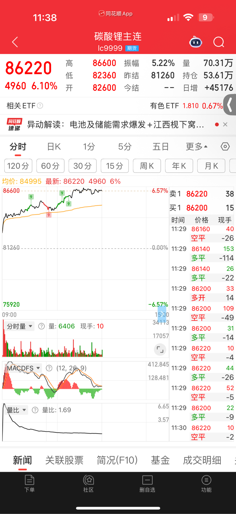 $安达科技(SZ920809)$ 大家不要看板块,看碳酸铁锂期货,跟期货的,我上午一直在盯着期货走势