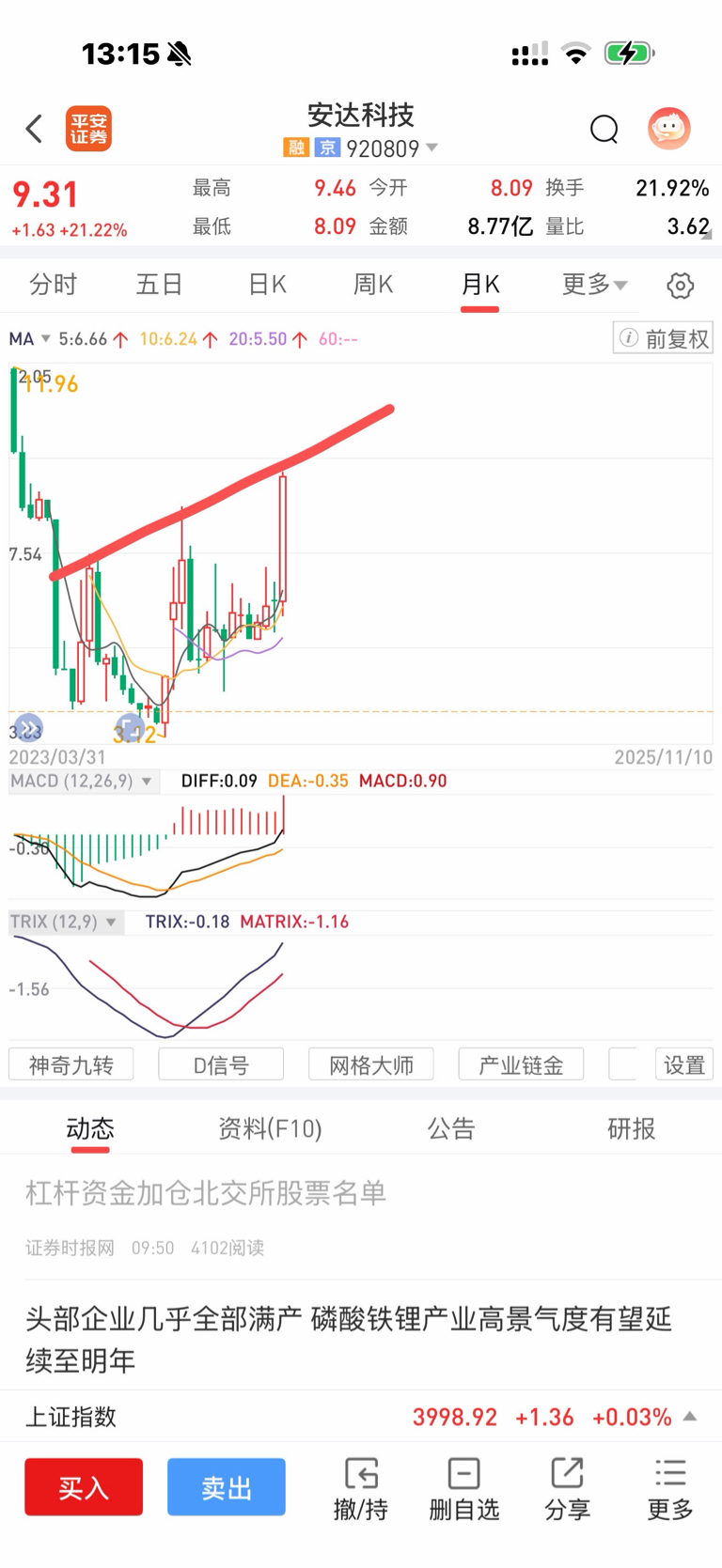 $安达科技(SZ920809)$ 9.3卖的爽死去,短期确实到顶了,我8.5就卖了