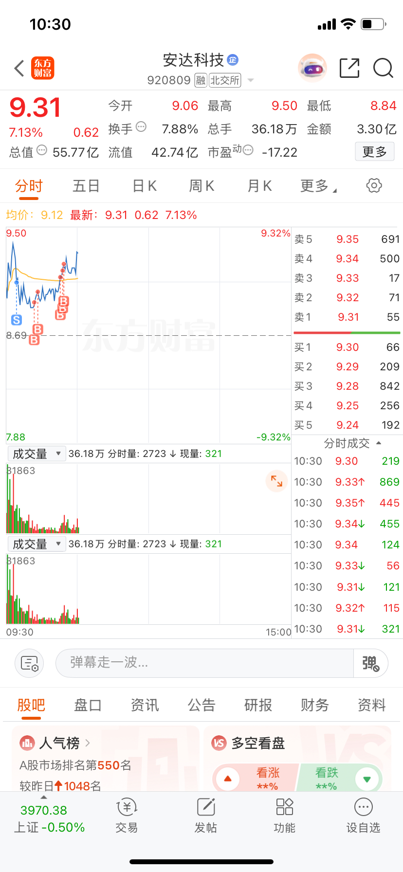 $安达科技(SZ920809)$ 瞎搞一番,今天可能错过盘中大富贵