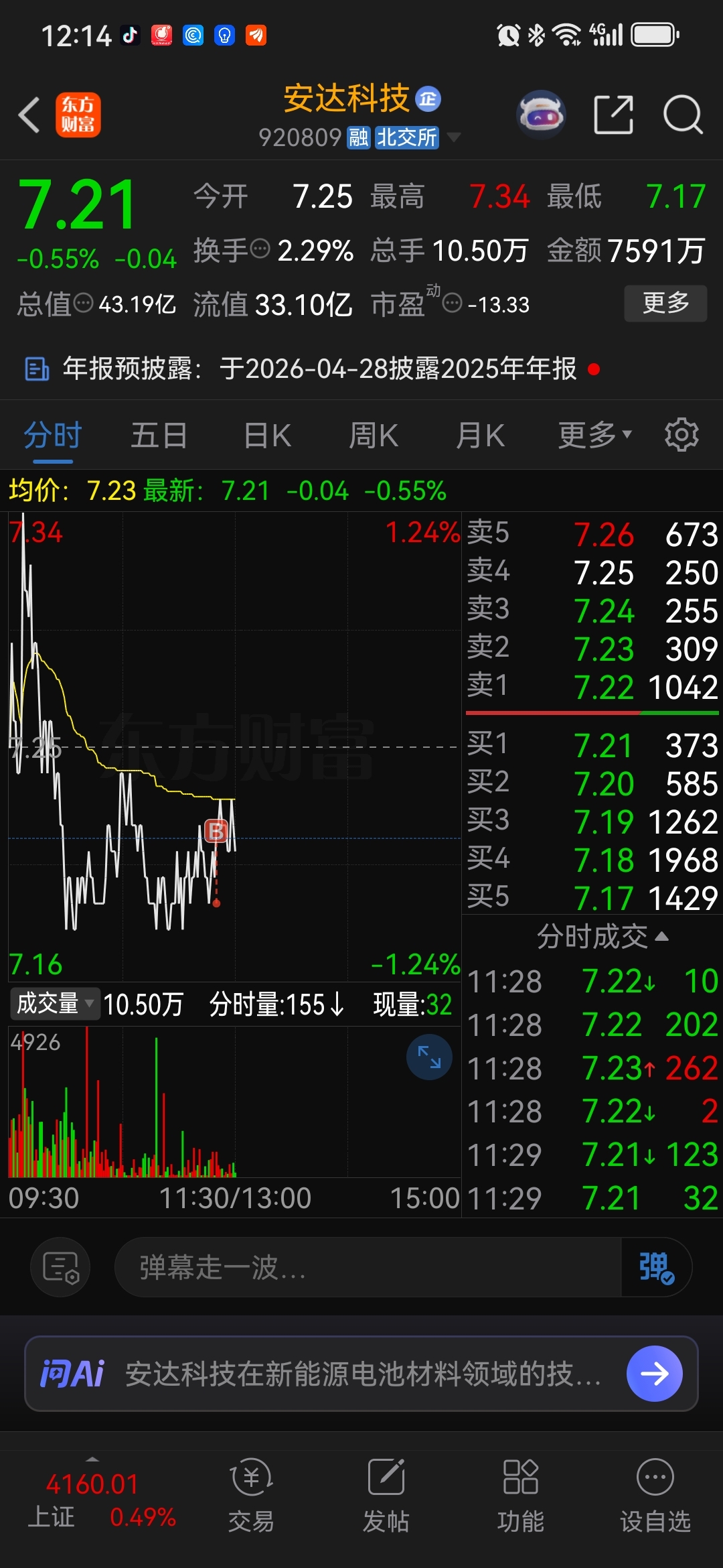 $安达科技(SZ920809)$ 已经加仓3成,主力资金看着办吧!