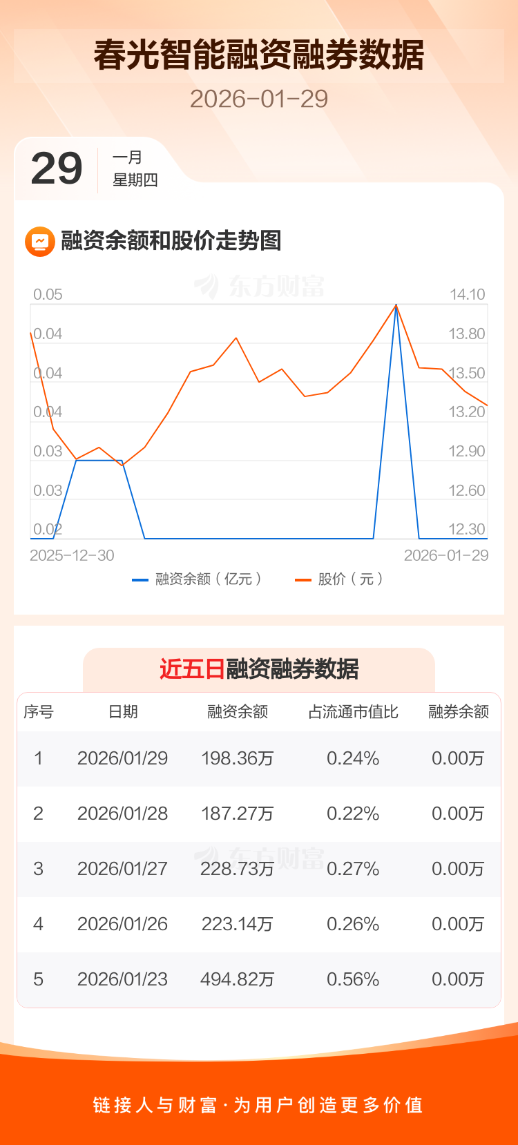 交易所最新数据显示,春光智能于2026年1月29日获融资买入28.83万元,融资偿还17.74万元,当日融资净买入11.1万元。目前,该股融资余额198.36万,占流通市值比例为0.24%。