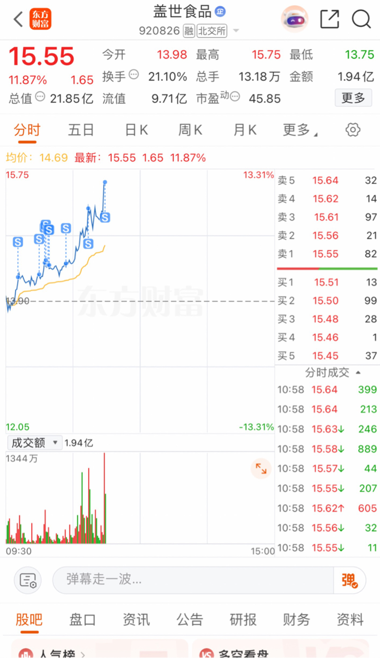 $盖世食品(SZ920826)$ 还没接回市场消费就大爆发了,多亏早上开了东百,要不消费这波又卖在启动前!