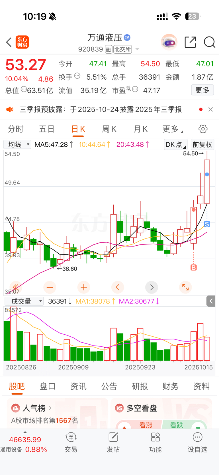 $万通液压(SZ920839)$ 全部出完,走了,谢谢万通