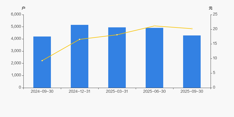自2024年12月31日以来,公司股东户数连续3期下降,截至目前减幅为16.82%。2024年12月31日至2025年9月30日区间股价上涨22.16%。