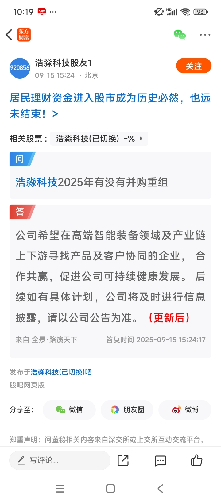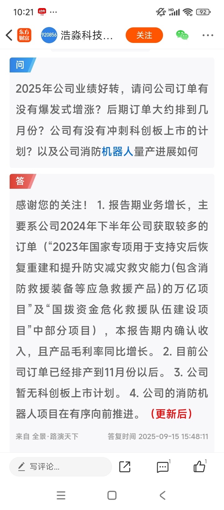 $浩淼科技(SZ920856)$ 9月订单就已经排产到11月份以后了,满产满销,十二月再冲一下,三季报净利润同比增长691%,现金流大幅增长,就看什么时候收购高端智能装备公司,之前拟收购的是合肥威艾尔智能技术,是一家军工企业