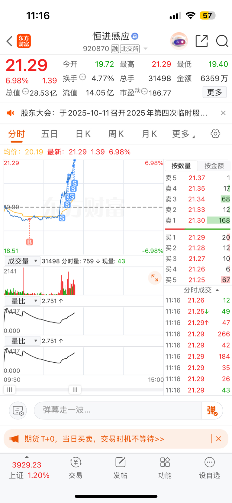 $恒进感应(SZ920870)$ 卖的差不多了,拉涨停吧哈哈哈哈