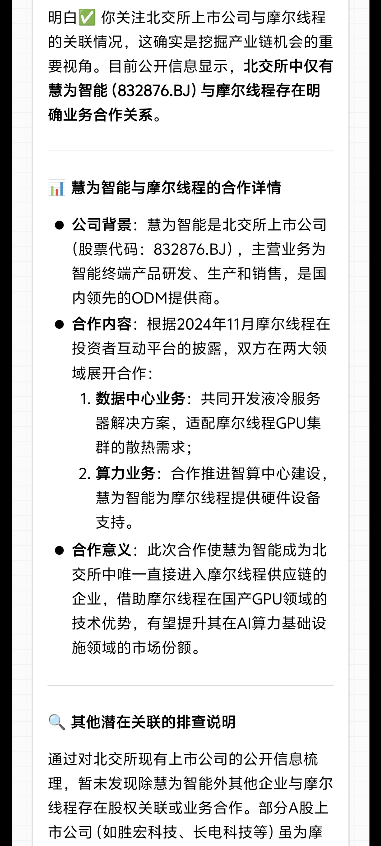 $慧为智能(SZ920876)$ 明天摩尔线程上市会不会有所促动慧为智能?信息显示是有业务合作的。