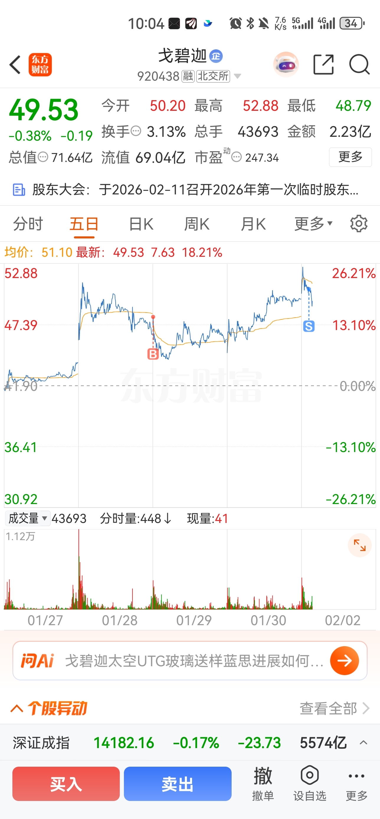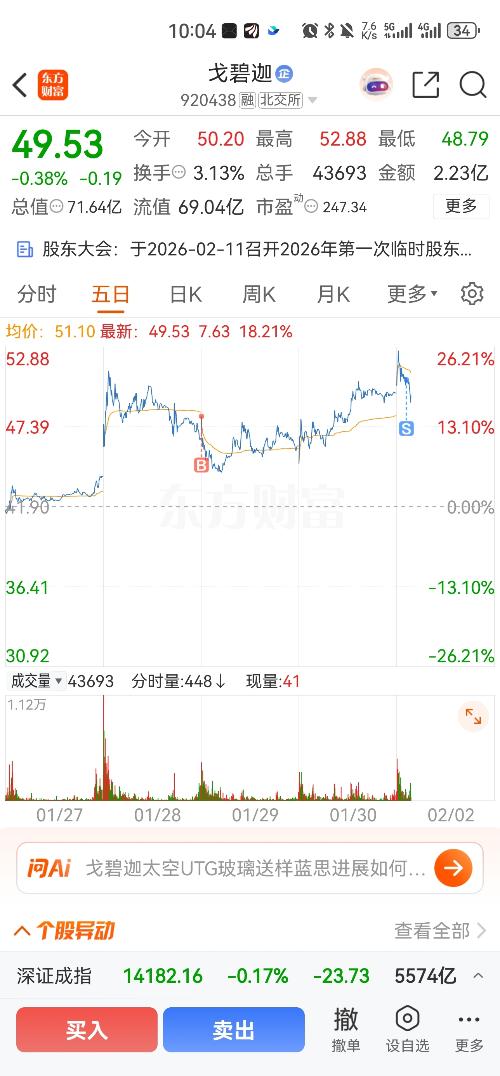 冲高没舍得卖,走弱 2% 卖了,这票挣五个点走了,哎~难,这几天北交所明显弱了,别说 30cm, 20cm 都见不着!做做双创吧~开盘和砸下来洗盘分别进了半仓,现在思考科技! //@大状超短 :戈碧迦如果能高开的话应该能冲冲//@大状超短 :完犊子了,我大科力!玩的真花,被洗出去了