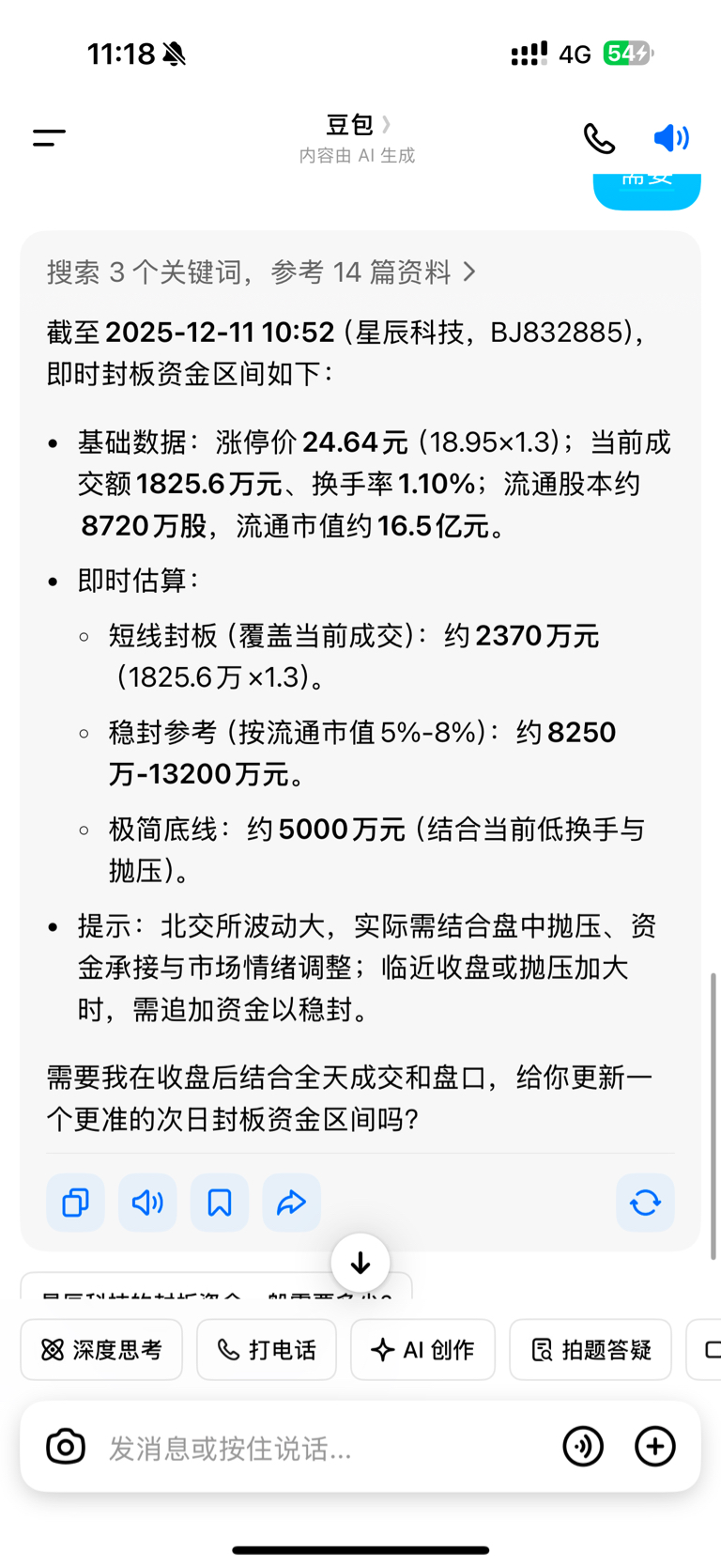 $星辰科技(SZ920885)$ 豆包说5000万可以封板,搞个5000万让封个板吧。