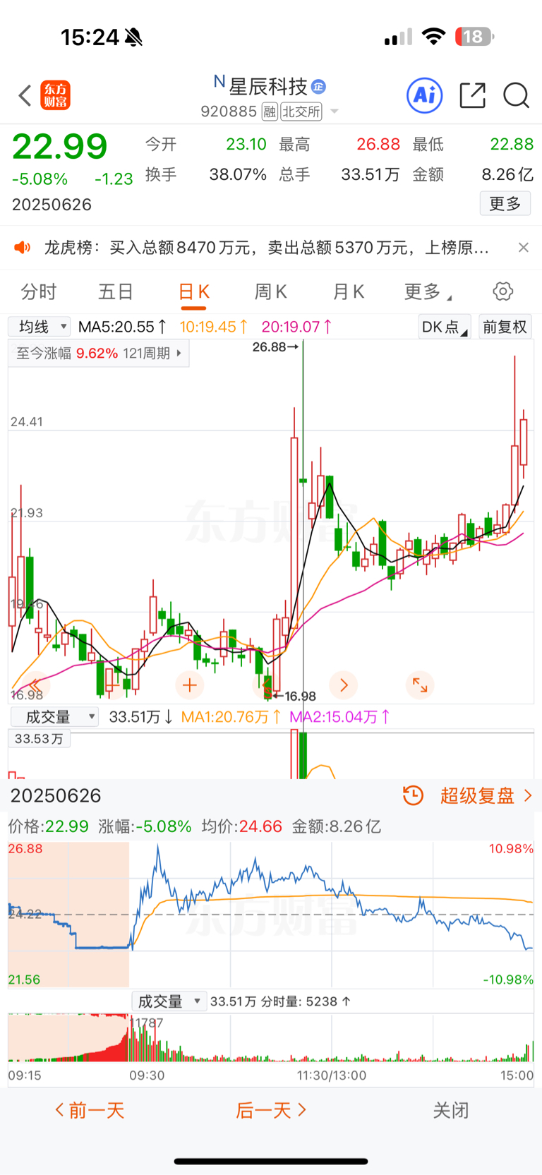 $星辰科技(SZ920885)$ 6.26号的走势你们都不看吗