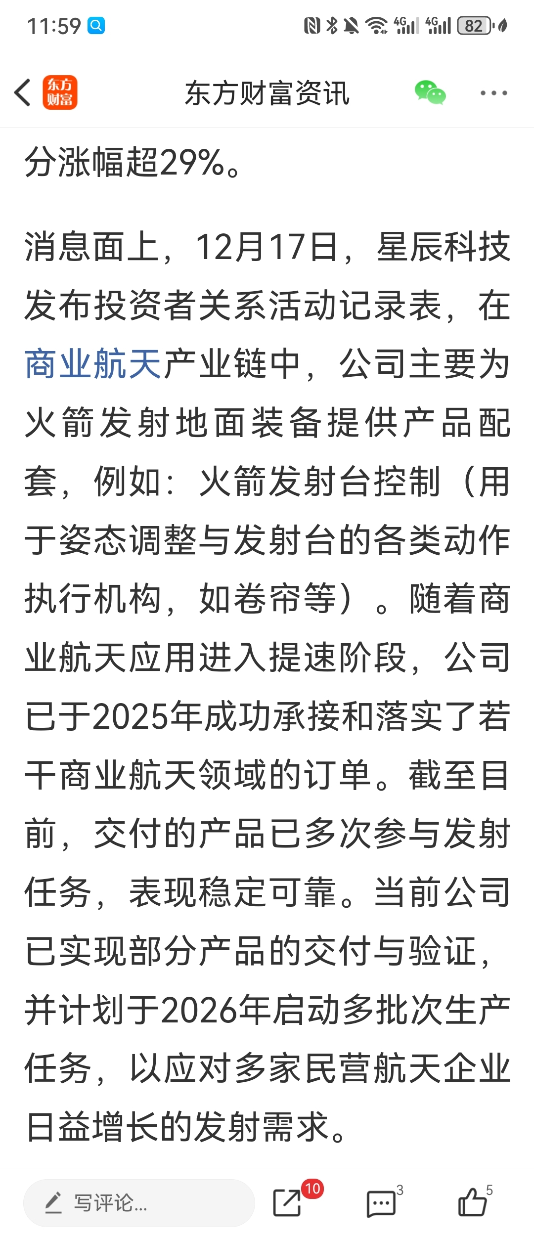 $星辰科技(SZ920885)$ 无论长江征十二甲是否成功回收,但是发射需求未来只会加速增长,成功了降低未来的发射成本,作为发射器伺服供应商2026的订单只会爆发式增长。