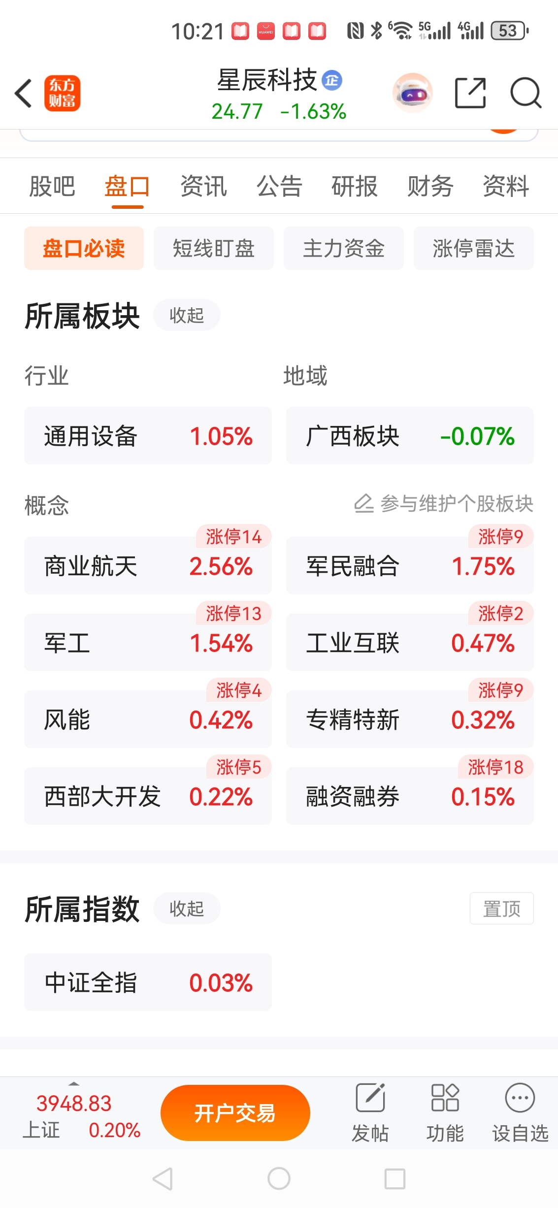 他麻的,星辰科技,你不跟商业航天,你跟军工也行啊,军工也大涨