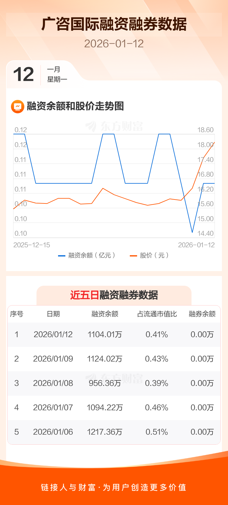 交易所最新数据显示,广咨国际于2026年1月12日获融资买入431.01万元,融资偿还451.02万元,当日融资净偿还20.01万元。目前,该股融资余额1104.01万,占流通市值比例为0.41%。