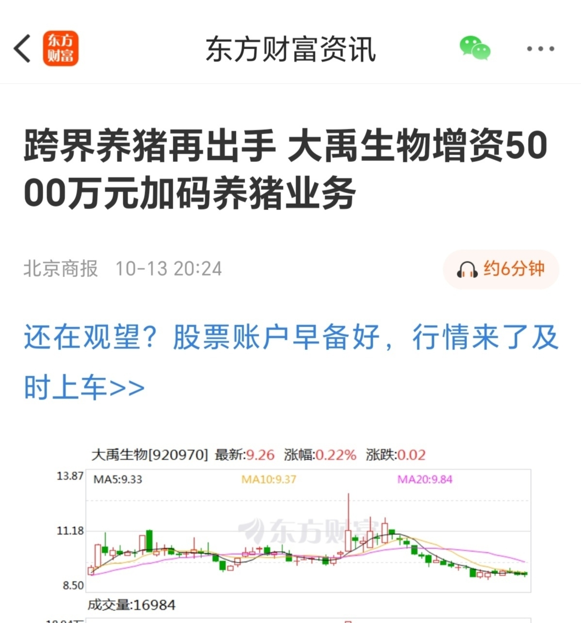 旺成科技股价大涨市值高达23亿多,大禹生物营收和业绩增长,总市值才10亿,流通市值才6亿,猪肉板块年底都会有一波,五天均线向上,有反包封板迹象