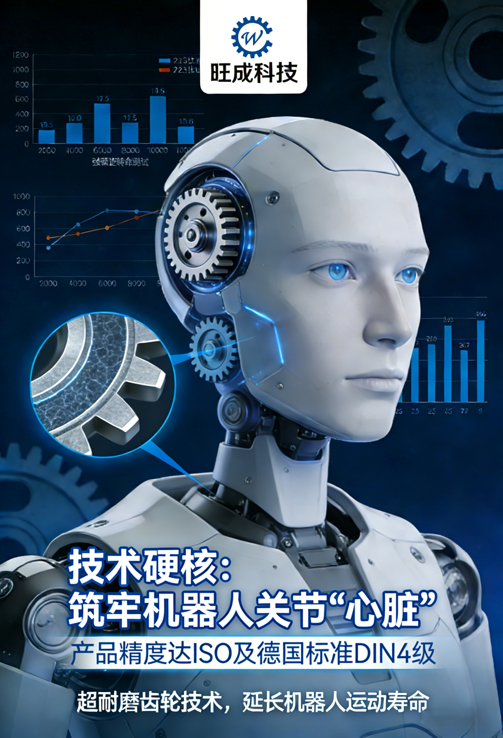 旺成科技深耕精密齿轮制造多年,凭借高端设备与工艺突破,将机器人齿轮精度拉满——通过“滚齿+磨齿”复合工艺,搭配瑞士莱斯豪尔高端磨齿机,产品精度达ISO及德国标准DIN4级,远超新能源汽车6级以上的精度要求,完全适配工业及人形机器人对传动部件的严苛需求。