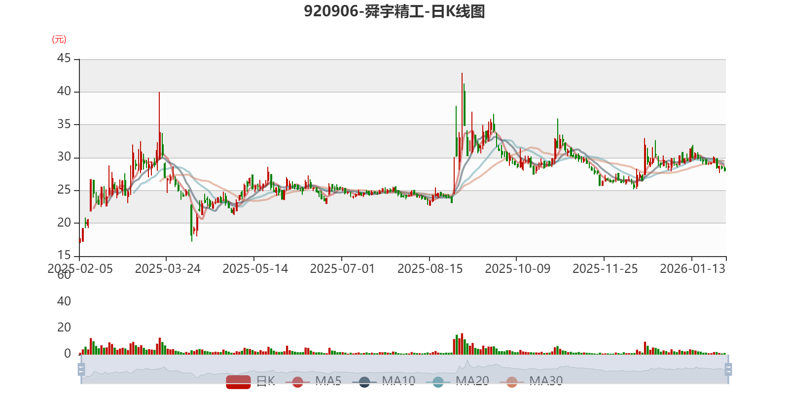 中证智能财讯舜宇精工(920906)1月29日晚间披露2025年度业绩预告,预计2025年归母净利润2900万元至3750万元,同比增长65.65%-114.21%;扣非净利润预计1400万元至1800万元,上年同期亏损2356.82万元。以1月29日收盘价计算,舜宇精工目前市盈率(TTM)约为48.53倍-62.75倍,市净率(LF)约3.12倍,市销率(TTM)约2.38倍。