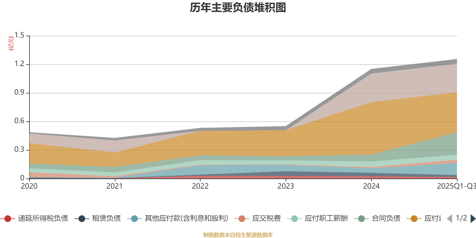 负债重大变化方面,截至2025年三季度末,公司应付票据及应付账款较上年末减少23.6%,占公司总资产比重下降3.22个百分点;合同负债较上年末增加222.39%,占公司总资产比重上升3.17个百分点;其他应付款(含利息和股利)较上年末增加162.9%,占公司总资产比重上升1.53个百分点;应交税费较上年末增加172.6%,占公司总资产比重上升0.42个百分点。