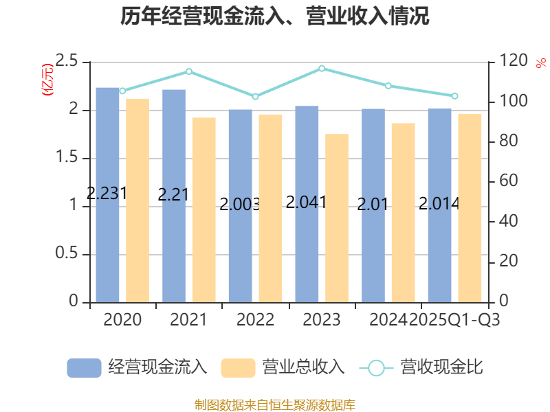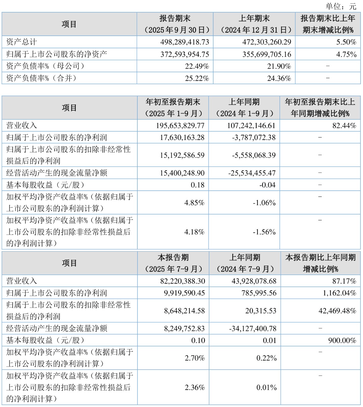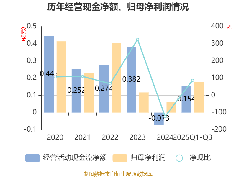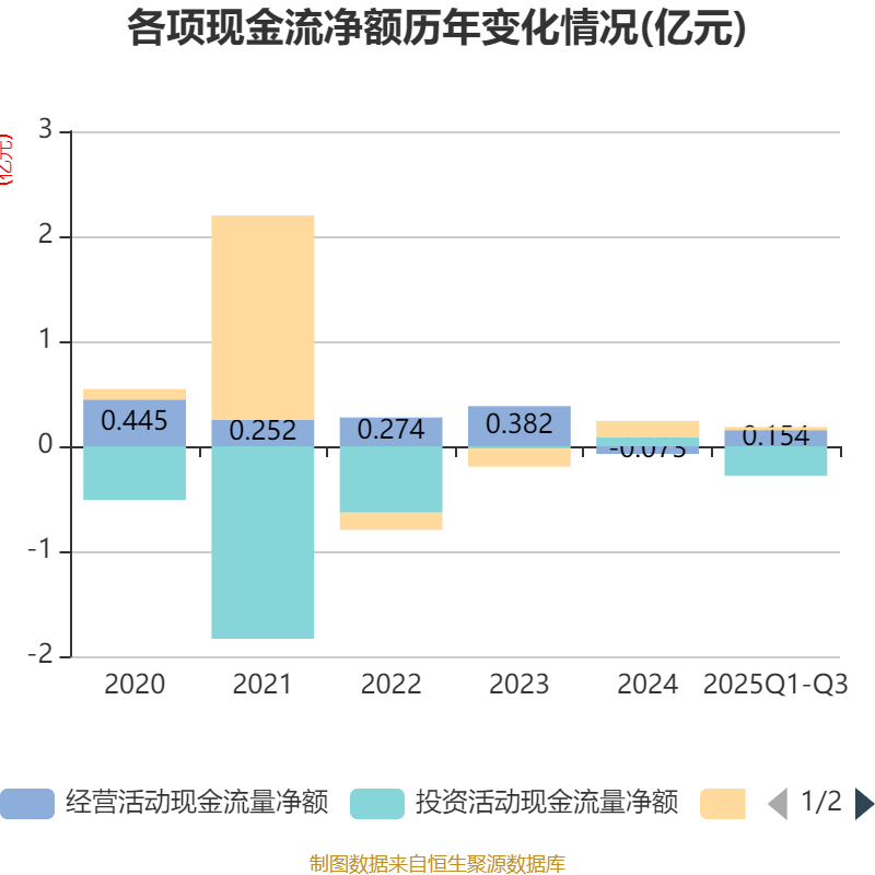 2025年前三季度,公司经营活动现金流净额为1540.02万元,同比增加4093.47万元;筹资活动现金流净额290.95万元,同比减少339.17万元;投资活动现金流净额-2801.95万元,上年同期为-174.41万元。