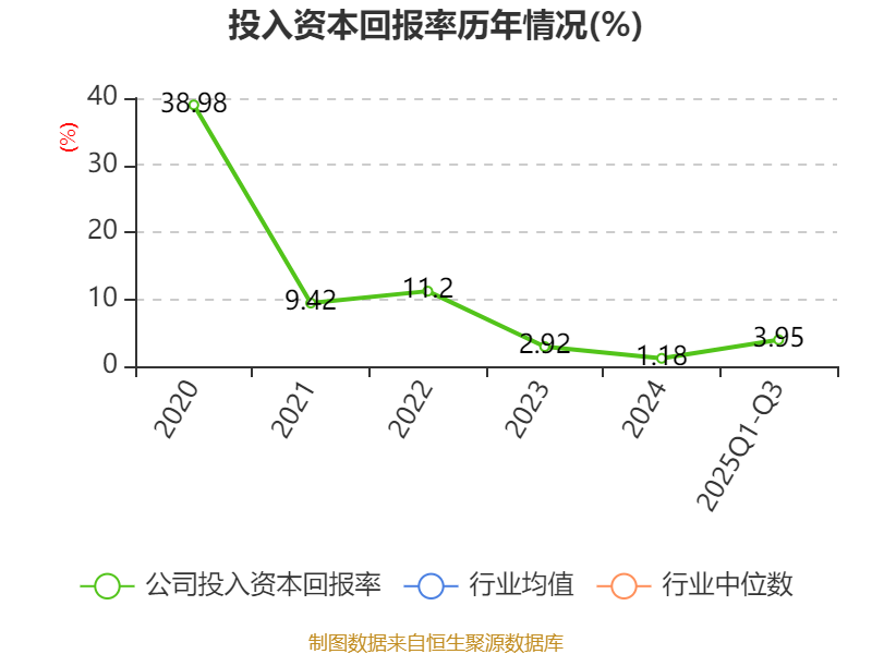 盈利能力方面, 2025年前三季度公司加权平均净资产收益率为4.85%,同比上升5.91个百分点。公司2025年前三季度投入资本回报率为3.95%,较上年同期上升5.4个百分点。
